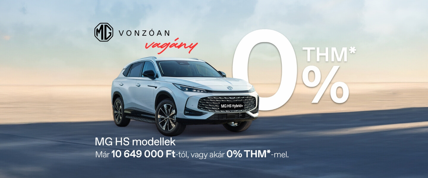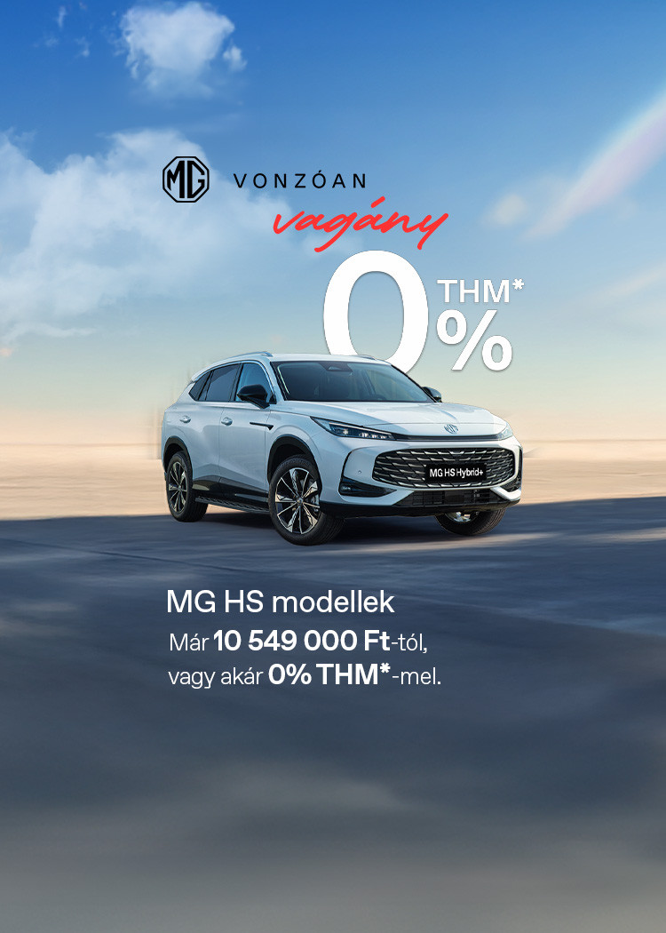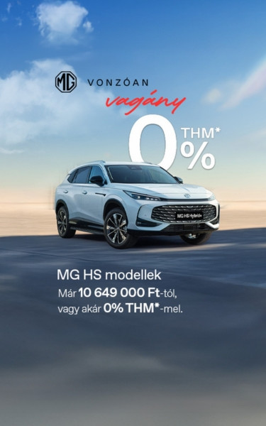 Most minden MG HS modell kedvező, akár 0%-os THM*-mel érhető el! Válaszd a számodra legmegfelelőbb finanszírozási konstrukciót, és vidd haza könnyedén a számodra ideális MG HS-t.